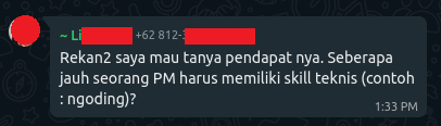 Rekan2 saya mau tanya pendapat nya. Seberapa jauh seorang PM harus memiliki skill teknis (contoh : ngoding)?